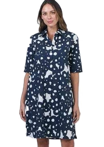The Oban dress is the ultimate casual shirt-dress, wide collar matches wide cuff. A shell button on each sleeve cuff and on the front shell buttons all the way down to the mid-thigh with a side-split hem. Two side pockets and centre-back box pleat. This is the pinnacle of casual chic and a wardrobe essential.