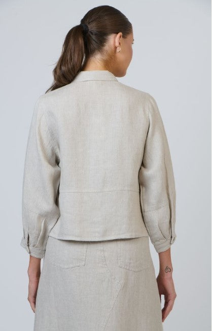 Breathe new life into your wardrobe with the Demi Top - a shirt that marries structured design with relaxed comfort. It features a cropped silhouette, twin front pockets, a button-down front, and perfectly balanced 3/4 sleeves. The clean-cut hem offers a polished finish, pairing beautifully with our Naomi pants.
